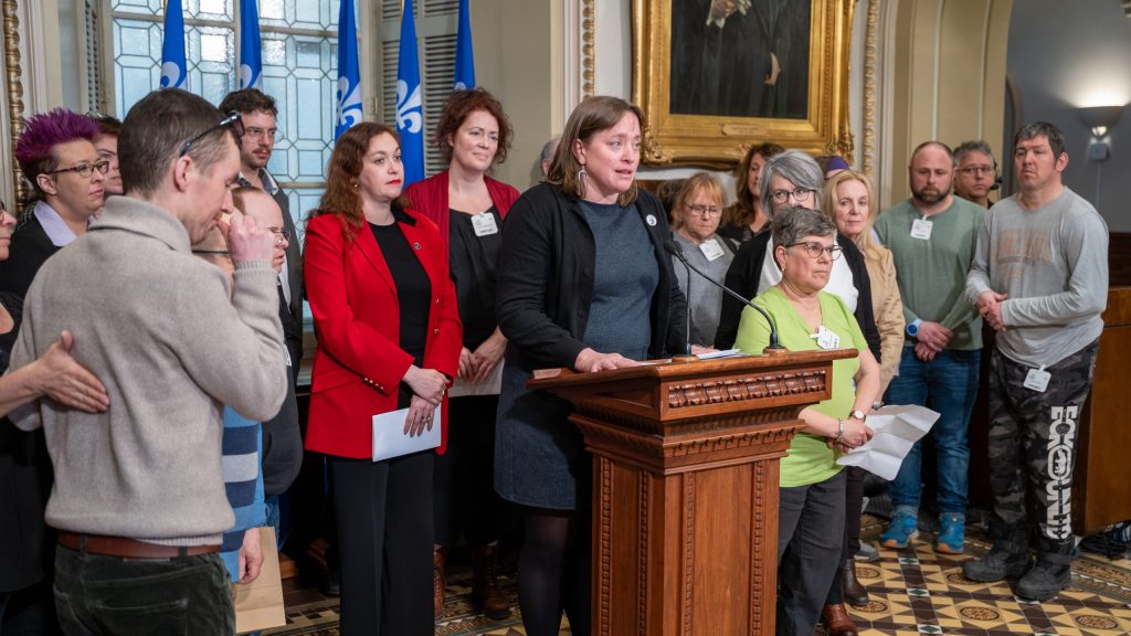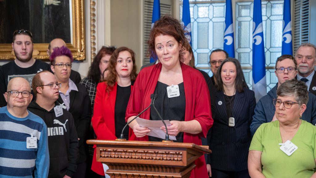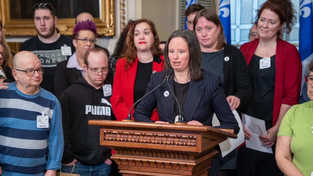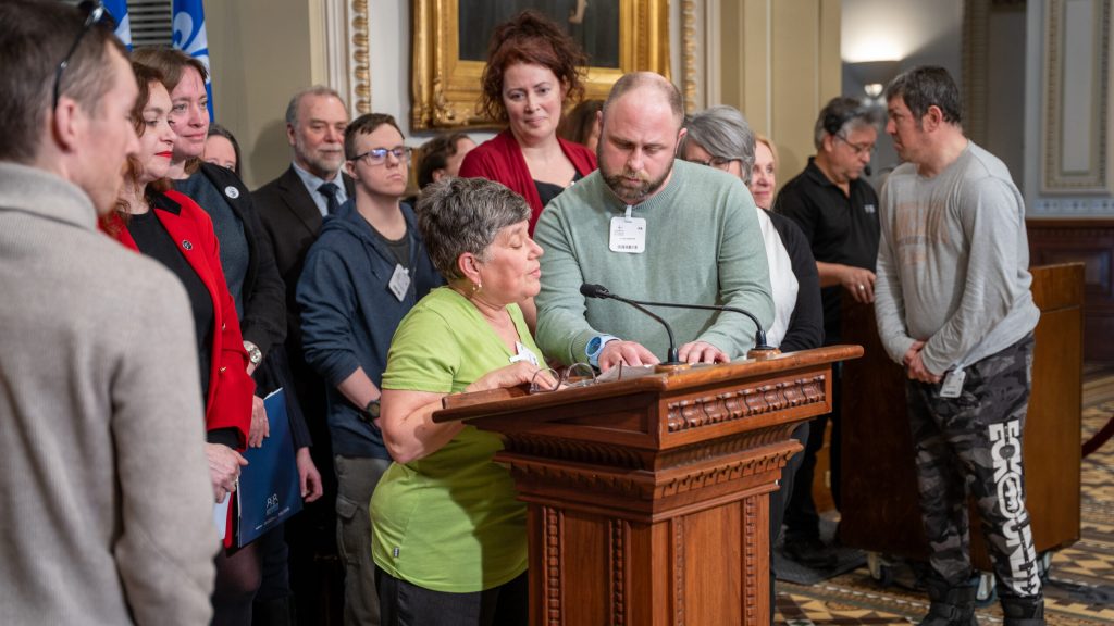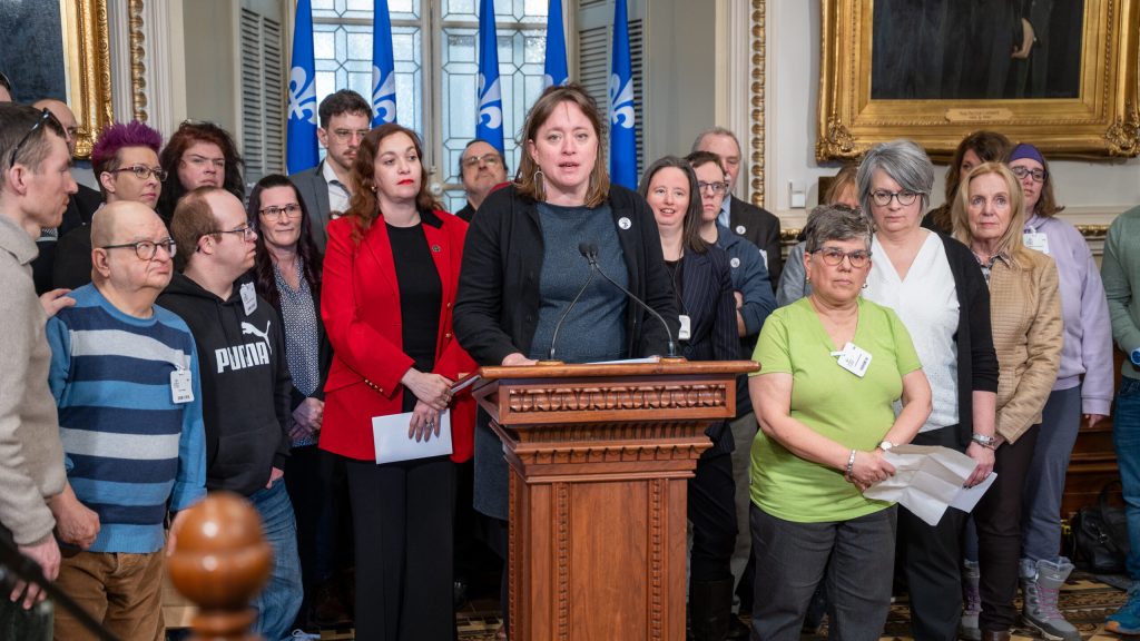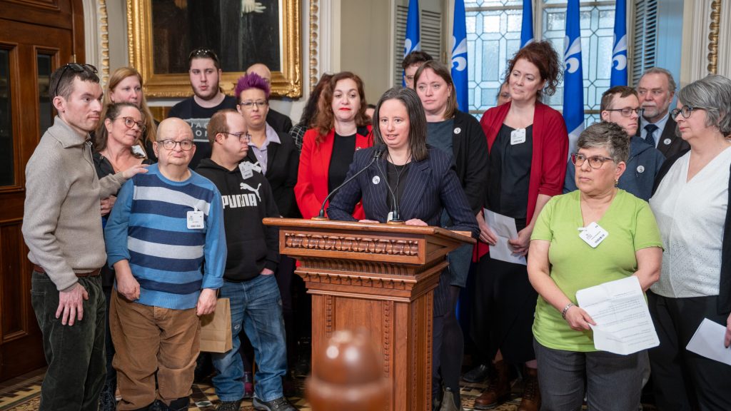 Le 18 mars dernier, la SQDI, la Fédération des Mouvements Personne d’Abord du Québec – FMPDAQ et la Fédération québécoise de l’autisme étaient à l’Assemblée nationale avec la députée Élisabeth Prass pour assister au dépôt de la pétition visant à améliorer l’accessibilité des milieux de vie des personnes autistes ou ayant une déficience intellectuelle. Ce sont plus de 6000 personnes qui ont signé la pétition, partout au Québec ! Cela démontre l’importance du sujet et l’urgence d’agir pour le gouvernement.